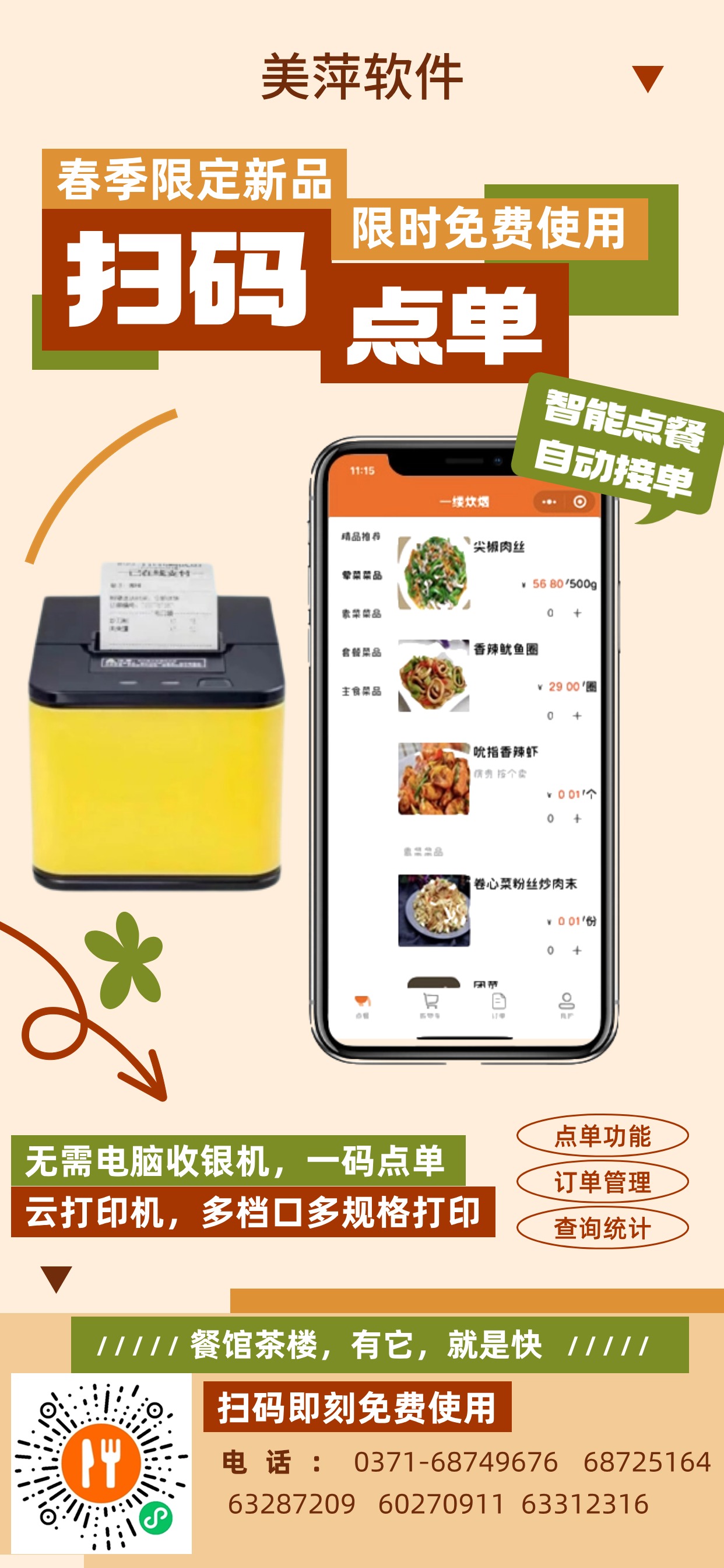 美萍智能点餐 自动接单无需电脑收银机,一码点单云打印机,多档口多规格打印