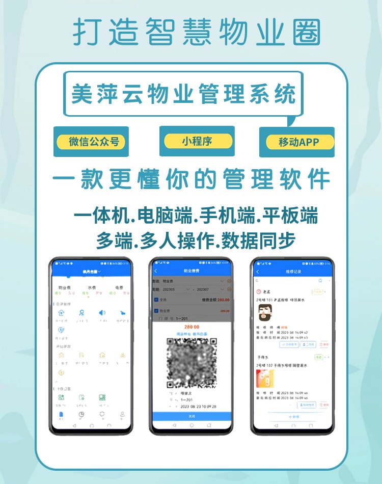 美萍云物业管理系统-一款更懂你的管理软件一体机.电脑端.手机端.平板端多端.多人操作.数据同步