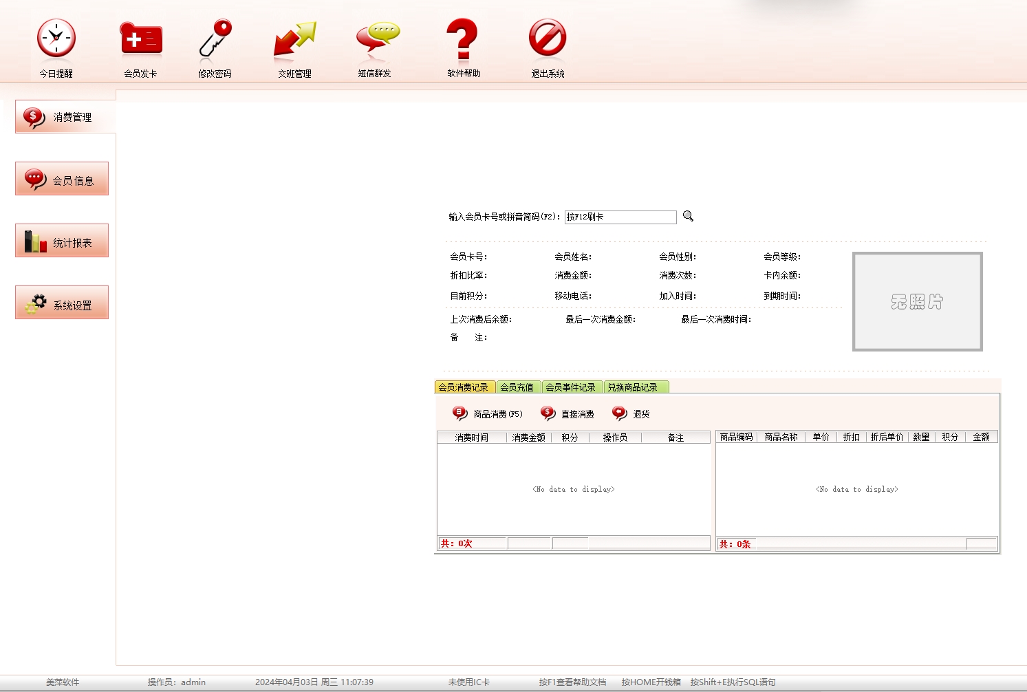适用不同类型卡片:可以使用条码卡、磁条卡、ID卡、IC卡等不同类型的会员卡,增加顾客选择的灵活性。