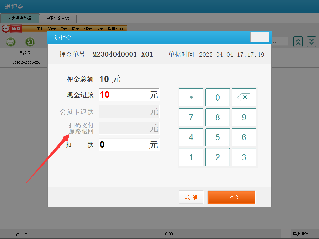 美萍自助餐收银管理系统中收的押金,可以做原路退回是吧?可以退,跟酒店一样