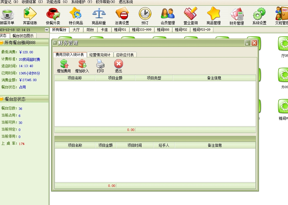 第三:茶楼软件提供收银结账管理,支持联合结账,支持多种支付以及免单和欠单。