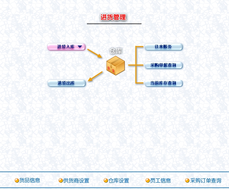 第一:库存软件支持进货管理:进行货品采购入库,采购退货,进货单据和当前库存查询,与供货商的往来帐务。